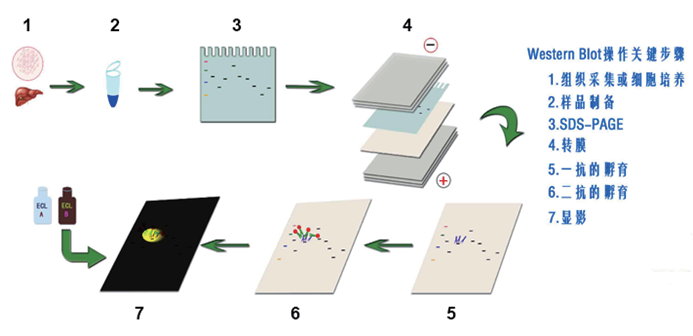 免疫印跡(Immunoblotting)又稱蛋白質(zhì)印跡(Western Blot,WB),是一種綜合性的免疫學(xué)檢測技術(shù)。它利用SDS-PAGE技術(shù)將生物樣品中的蛋白質(zhì)分子按分子量的大小在凝膠上分離開,然后用電轉(zhuǎn)移的方法將蛋白轉(zhuǎn)移到固相膜上,以固相膜上的蛋白質(zhì)作為抗原,與對應(yīng)的抗體起免疫反應(yīng),再與酶標(biāo)記的第二抗體起反應(yīng),經(jīng)過底物顯色或熒光成像等方法以檢測電泳分離的特異性目的基因表達(dá)的蛋白質(zhì)。WB技術(shù)現(xiàn)已廣泛應(yīng)用于蛋白水平的表達(dá)研究、抗體活性檢測和疾病早期診斷等多個研究領(lǐng)域。